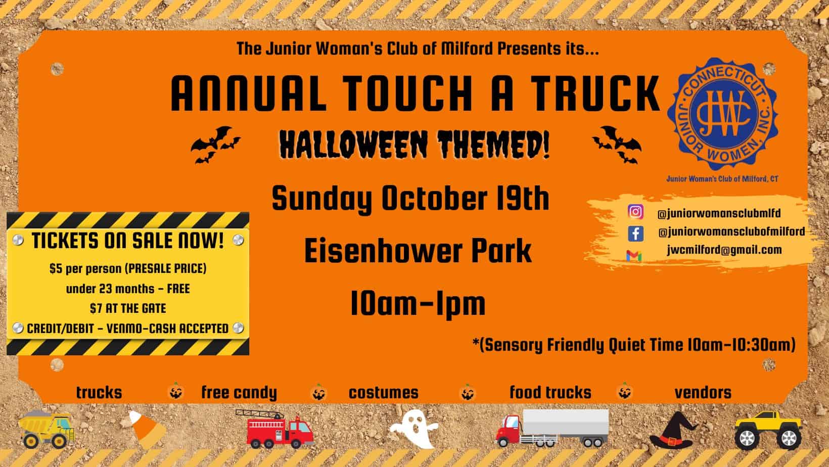 It’s that time of year again! The Junior Woman’s Club of Milford is excited to present its Annual Touch A Truck Event on Sunday, October 19th at Eisenhower Park from 10:00AM – 1:00 PM. This fun-filled day at Eisenhower Park is perfect for all ages.